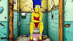 ¡Marge Simpson milf lo toma en escenas de orgasmos con culo grande y tetas, juguetes y deepthroat!