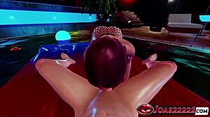 imagine redhead kallen at the pool stroking cock then sloppy blowjob footjob in fishnets cum swallow